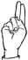 На ћирилици написано АНЂЕЛИЈА КОМАРНИЧКИ састоји се из 18 слова [?]. Исписано ћириличном једноручном азбуком за глувонеме: